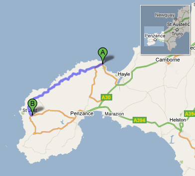 As you pass Zennor, things change. Not only is the pace disrupted as the road tightens to navigate villages and farms, but so it would seem does time itself. For every mile further from St Ives you travel, further back in time you go. I was half expecting to see Dickensian scenes of children rolling wooden hoops down the street or legless sailors ravishing grubby looking women in alleys. But when you do arrive at St Just it's very much a tale of two cities as it looks as if the plague is in town as it's so dead. Sitting as the most westerly town in mainland England and Wales, it makes St Ives look like Rio de Janeiro during carnival season and you'll soon feel drawn back along the B3306 to be reunited with the relative bustle of St Ives.