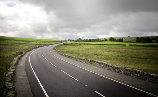 Through the trees the tarmac makes a dash for higher ground, quickly exchanging the overhanging canopy and unforgiving granite walls for the vast bleak moorland and tons of sky. Within a mile of the turn off the scenery should be a blur. Seven miles into the Evo triangle things start to get really good as numerous quick straights and long lazy cambered turns unfold beautifully in front of your wheels. The road gets busy trying to squirm away from you into the distance but the visibility is so good it can't hide for long enough to throw any great surprises your way. It veers off into the distance, wiggling downhill, ducking behind a few craggy mounds then up again arrowing off into the distance like a life-size Scaletrix track. After countless straights, sweeps, swoops and climbs you'll forget you're on a public road and think you're in Disney World for driving enthusiasts. Stay alert though, if there's one thing that will remind you that you're in the middle of nowhere (as it nearly did me) is a quick 'hello' with the local livestock which frequent these fantastic Welsh roads.